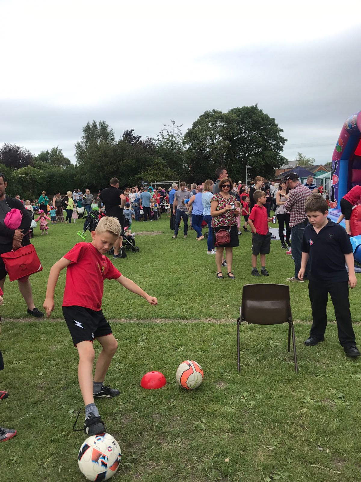 Anita Bowman from the school said “We just want to say a big thanks for Samantha coming to the Cherry Grove summer fair last Friday with your penalty shootout! The kids loved trying to score into the shootout and it raised £43-50 – we’re very grateful!”.