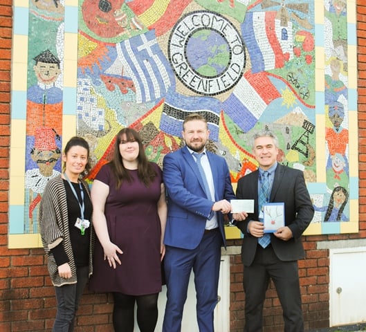 New Directions Account Manager, Rebecca Murphy, Branch Manager for our ALN team in Cardiff, Jon Evans and Head of Marketing and Communications, Ruth Dalton attended an assembly at the school and presented the £500 cheque to the school. The assembly acknowledged the ‘stars of the week’ and the deputy head led a chorus of the school’s welcome song for visitors. Unfortunately Oliver was off sick so his class teacher accepted the cheque on his behalf.