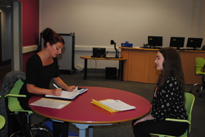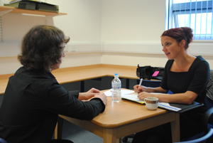 Group Communications Assistant Mehnaz Khan and Kirsty Knowles, from New Directions spent the morning interviewing pupils for a mock job position, in order to help develop and assess their skills for the working world.